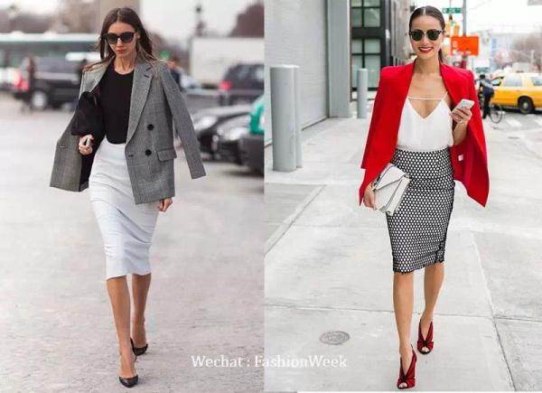 端莊優雅的小西裝配搭溫婉典雅的半身裙,知性有魅力,小西裝披著更時尚。